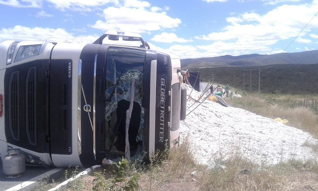 Um acidente envolvendo uma carreta bitrem carregada de caroços de algodão foi registrado no início da tarde desta quarta-feira (26) na BR-226 entre a sede do município de Pedra Branca e o distrito de Mineirolândia.