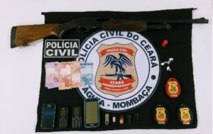 Foram presos, Denis Fernandes Alves (35) – porte ilegal de arma de fogo e crime contra a administração pública; e Cesar Alves Aprigio (28) – sem antecedentes. Proprietário e funcionário, respectivamente. Por meio de buscas realizadas no bar, situado na CE 060, os policiais civis encontraram uma espingarda calibre 12, que estava enterrada nos fundos da propriedade abordada; e em seguida, foram localizados três pinos de cocaína.
