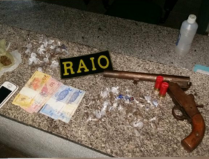 Com os acusados foi encontrada além de uma espingarda, drogas e dinheiro que seria fruto do tráfico