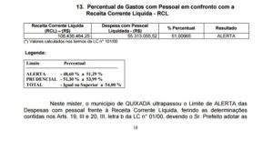 Em relação aos gastos com pessoal, comparando-se o segundo quadrimestre da gestão de João Hudson, ou seja, de maio a agosto do primeiro ano de governo, com o mesmo período da atual gestão, Ilário gasta muito mais que seu antecessor. Para se ter uma ideia Hudson naquela época não havia infringido à LRF, o petista não só desrespeitou como ultrapassou em quase sete por cento o que foi gasto pelo ex-prefeito.