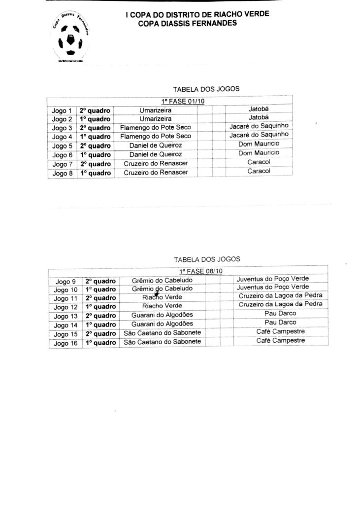 Já está tudo pronto para a partida de lançamento da 1ª Copa Diassis Fernandes de Futebol, a competição foi a forma encontrada para comemorar o 17º aniversário do distrito de Riacho Verde, em Quixadá.