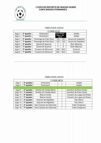 A 1ª Copa Diassis Fernandes realizada no distrito de Riacho Verde, competição que conta com participação de 32 equipes, teve início no último domingo (01) com a participação de um grande público e a realização de seis partidas.