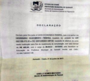 Por outro lado, a administração pública da Terra dos Monólitos procura reduzir os ganhos de quem menos recebe. Foi assim com os professores e está sendo assim com os integrantes da banda de música do município, de acordo com denúncia publicada no domingo (22) e nesta segunda-feira (23) no Portal Brasil Sonoro, especialista em partitura e música, criado em 2009. O administrador do site, Welligton Sousa, afirma que alguns músicos da banda o procuraram para informar que a Prefeitura de Quixadá burla a lei municipal 1465 de 21 de agosto de 1992, que em seu segundo artigo, diz que “o bolsista terá, como forma de estímulo, uma ajuda mensal da ordem de meio salário mínimo nacional”, ou seja R$ 468,50, mas o Executivo quixadaense ao invés disso, criou recentemente uma espécie de contrato tornando os músicos estagiários e recebendo uma bolsa de R$ 400, 00, valor menor do que reza a lei.