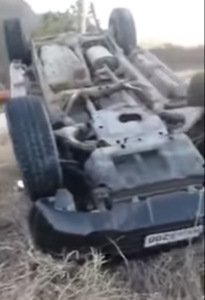 O carro em que o médico seguia estourou um dos pneus vindo a capotar logo em seguida (Foto: QuixeramobimNews)