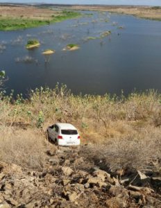 Já na manhã deste domingo (19), o carro que foi levado no assalto foi encontrado abandonado com os quatro pneus estourados por tiros dentro do açude Fogareiro. Os bandidos jogaram o veículo de cima da parede do reservatório.
