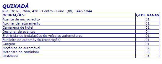 Confira abaixo somente as vagas para a cidade de Quixadá, divulgadas pelo Sine/IDT.