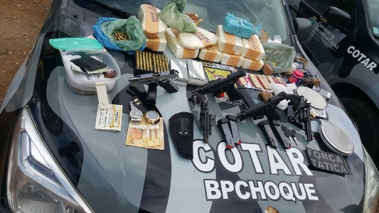 Foram apreendidas 144 munições de calibre 40, 82 munições de calibre 38 e 20 munições nove milimetros, além de 12 kg de pasta base de cocaína, 500g de cocaína em pó e 2kg de crack. No total, cinco armas de fogo foram apreendidas. O material apreendido, junto com os suspeitos, foi encaminhado para a Delegacia Regional de Crateús, onde foram autuados por posse ilegal de arma de fogo e munições de uso restrito, tráfico de drogas e associação para o tráfico.