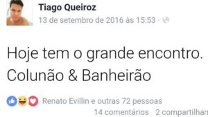 Ainda em relação ao agressor de Quixadá, Tiago Queiroz, que tem cargo de confiança na atual gestão, já havia feito duras críticas ao atual prefeito de Quixadá, onde numa postagem ele diz que “Hoje tem o grande encontro. Colunão e Banheirão”, referindo-se a uma reunião entre Ilário Marques (Assim chamado por ter construído apenas colunas numa reforma no hospital do município) e o governador Camilo Santana (Acusado de envolvimento em desvio de dinheiro na época que era secretário do governo do estado). A postagem demostram como agressor se comportar nas redes sociais, onde outrora ofendia o seu atual patrão, demonstrando assim, como fez com J.K.C.G, que sempre usou da violência psicológica e moral para atingir a quem não o agrada. Sua postura sempre foi de desrespeitar as pessoas nas redes sociais.