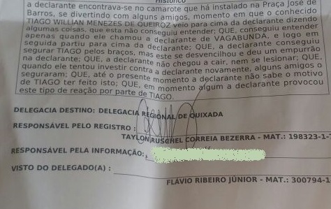 Uma mulher de Quixadá tem vivido uma verdadeira mistura de filme de terror com drama. A jovem J.K.C.G, que pediu para divulgar apenas as iniciais de seu nome, foi agredida durante o Carnaval Popular de 2018 por um funcionário da prefeitura, que de acordo com ela também a persegue na rede social Facebook desde o ano passado. Cansada, apavorada e humilhada, procurou a redação do Monólitos Post para denunciar o fato, pois não esperava que as agressões saíssem do mundo virtual para o real. Ela registrou Boletim de Ocorrência (BO) no último domingo (12), informando que o jovem Tiago William Menezes de Queiroz, que é cargo de confiança do prefeito, a agrediu durante a primeira noite da festa momina na Terra dos Monólitos.