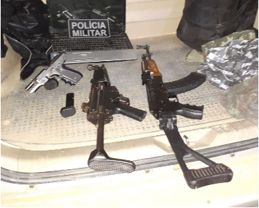 Ainda no sábado, por volta das 18 horas, no município de Boa Viagem, na localidade de “Ramadinha”, a equipe da Força Tática da 4°Cia/4°BPM, após uma ocorrência na qual houve uma troca de tiros com indivíduos fortemente armados, realizou uma expressiva apreensão de armas de fogo – um fuzil AK-47, uma submetralhadora calibre 9mm e uma pistola calibre 380.