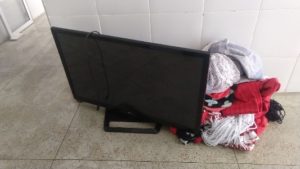 Também foram achados com o suspeito e em sua residência produtos oriundos de roubos de carga. Dentre eles, algumas redes, que foram roubadas há duas semanas. Foi detectado no interior da casa de Roberto mais algumas dessas redes. O vizinho do “Arrozão” comprava dele produtos oriundos de assaltos. Na casa desse vizinho, foi encontrada uma televisão roubada. Roberto Carlos recebeu voz de prisão e foi encaminhado à Delegacia Municipal de Pedra Branca, para mais averiguações. O homem responderá por porte ilegal de arma de fogo.