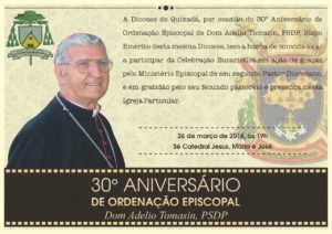 A celebração dos 30 anos de Emancipação Episcopal de Dom Adélio Tomasim, acontecerá na próxima segunda-feira (26) a partir das 19h na Sé Catedral Jesus, Maria e José de Quixadá e toda a população quixadaense é convidada a participar deste ato em homenagem a um dos homens que mais vez pela Terra dos Monólitos.