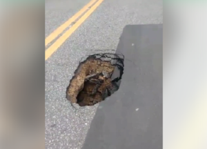 A cratera de grande profundidade se abriu nas proximidades do Posto São Paulo (Foto: Reprodução/Vídeo Sargento Agrião)