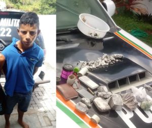 Na fuga os Policiais Militares conseguiram abordar Francisco Flávio Vitor da Silva, vulgo “Vitinho”, 20 anos, que já responde por tráfico de drogas e organização criminosa, além de um adolescente, de 16 anos.