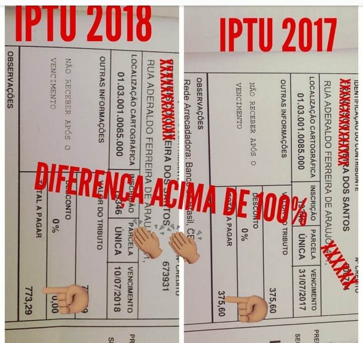 Depois que o valor do imposto foi alterado, um imóvel que tinha a cobrança de R$ 400,00, por exemplo, agora subiu para mais de 800 reais. Em alguns casos o aumento foi ainda maior e pegou de surpresa a população que já estava profundamente decepcionada com a atual gestão, que por sinal é uma das piores do Estado em matéria de educação, segundo a avaliação do SPAECE.