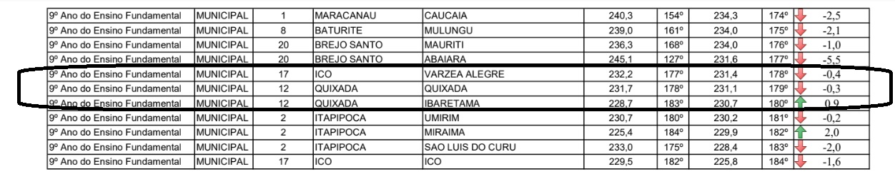 Neste semestre foi divulgado pelo SPAECE o ranking estadual relativo ao desempenho de cada Município cearense com relação a educação pública no exercício 2017. Quixadá, que deveria ser destaque no ensino fundamental, somou apenas 231,1 pontos no índice, ficando no 179ª lugar, à frente apenas dos cinco últimos municípios. Foi a primeira vez que a Terra dos Monólitos apareceu numa posição tão decepcionante justamente na área que deveria ser exemplo e não vergonha.