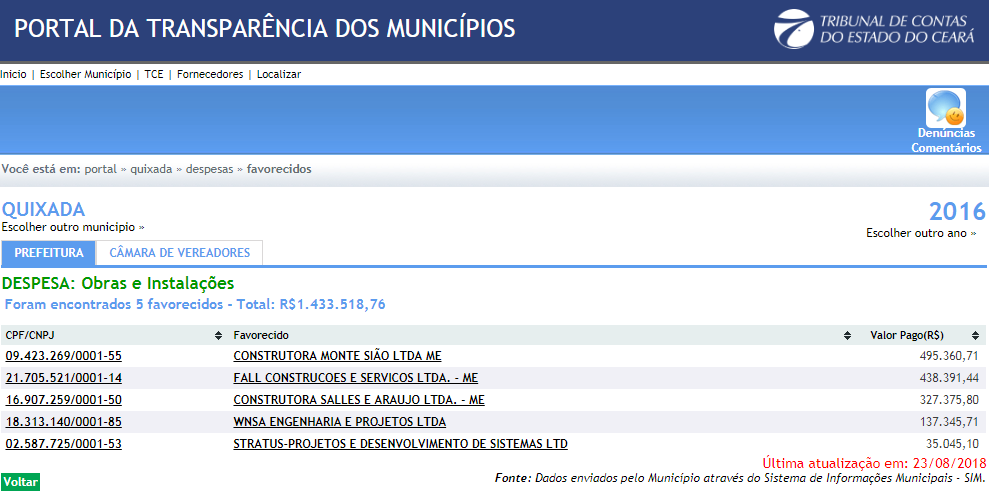 Ainda entre os desafios que serão enfrentados por João Paulo está fazer com que a Terra dos Monólitos saia do marasmo e estagnação deixados por Ilário Marques. Em 2017, o petista investiu muito pouco em obras e instalações: R$ 862.904.489 (Oitocentos e sessenta e dois mil, novecentos e quatro reais e quarenta e oito centavos), valores utilizados para reformas da sede da Secretaria de Desenvolvimento Urbano e Meio Ambiente, do posto de saúde e da sede da prefeitura no centro da cidade. Os valores para o primeiro ano de gestão são bem inferiores aos investidos no último ano de João da Sapataria, que foram quase 1,7 vezes mais. Os dados estão registrados no Portal da Transparência, onde é possível ver que neste ano, até o dia 23 de agosto, o governo municipal investiu menos que o primeiro e o último ano da administração do inexperiente político e comerciante, que assim como Marques também foi afastado por ordem judicial. Com estas informações, sabe o que os órgãos de fiscalização comprovam? O que eu digo sempre: Ilário promovia um governo baseado em um marketing fantasioso e mirabolante, com atitudes de gestores do século passado.