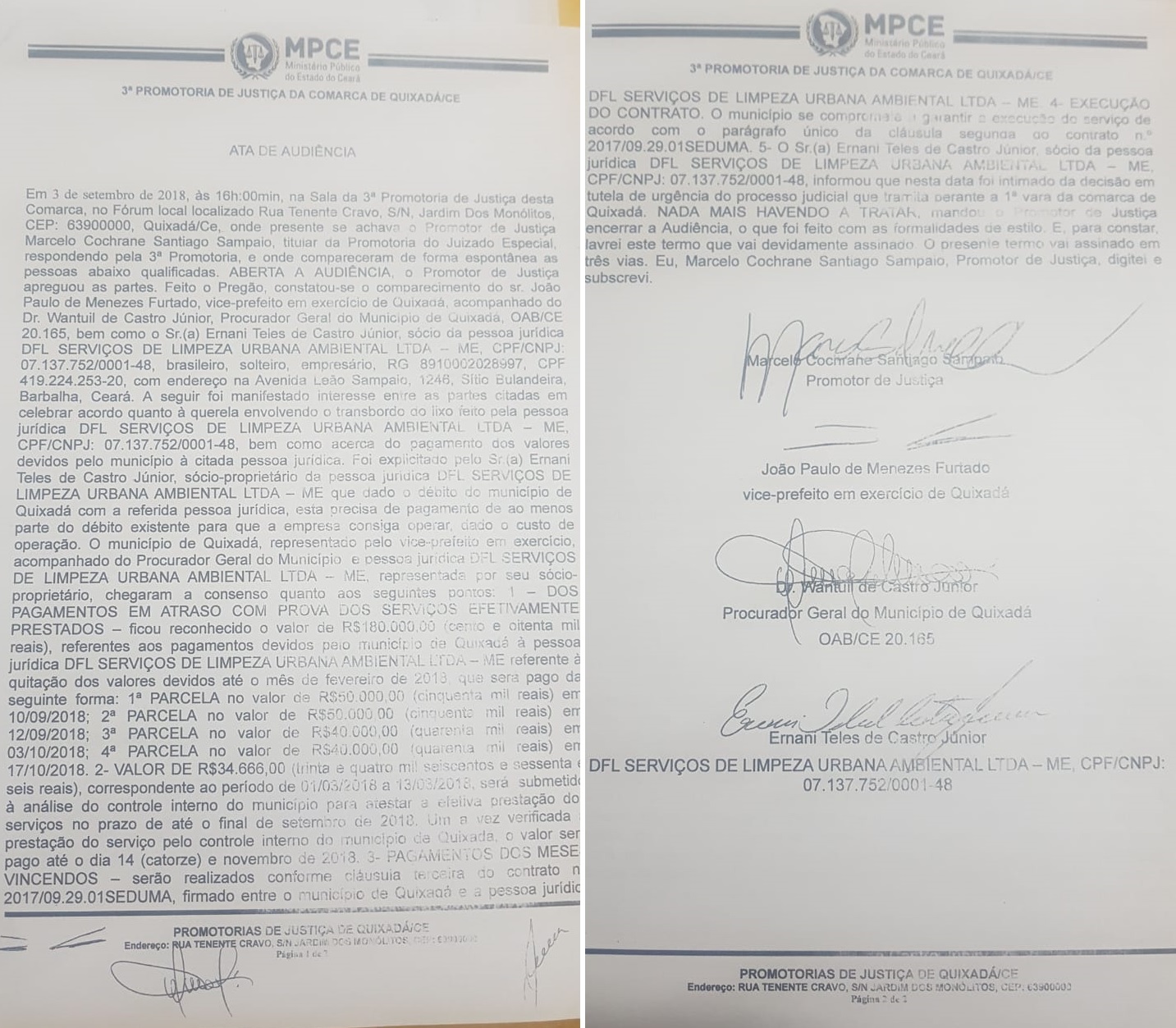 Abaixo você pode ler o acordo entre o Ministério Público e a prefeitura de Quixadá.