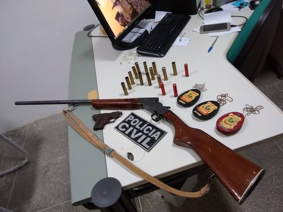 Segundo informações da Polícia Civil, a prisão e as apreensões se deram na localidade de Santa Clara, zona rural do município. Com o acusado identificado como Carlos Herbert de Sousa Pinto, 27 anos, os policiais apreenderam 02 armas de fogo.