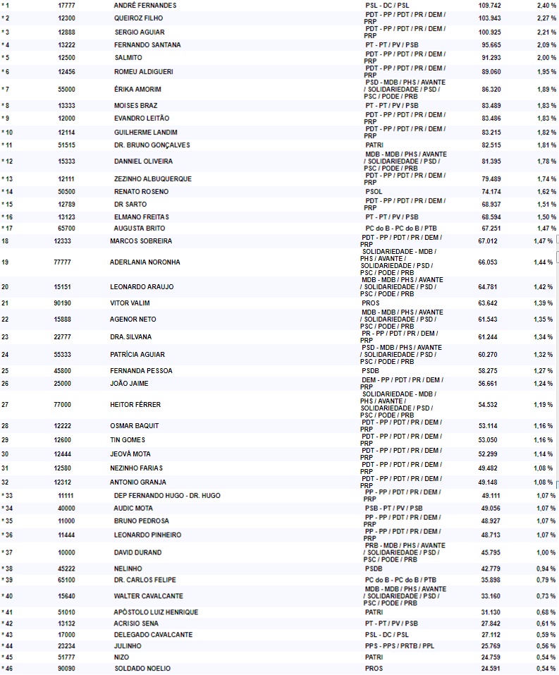 Confira abaixo a relação completa dos deputados estaduais e deputados federais eleitos no estado do Ceará.
