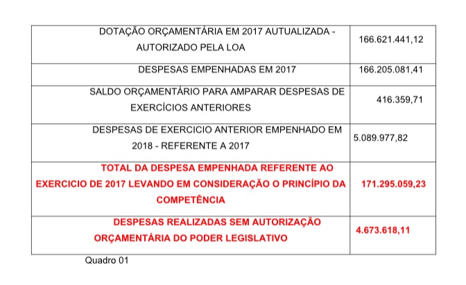 A advogada alega que a gestão comandada por Marques maquiou e fraudou os Demonstrativos Fiscal e Orçamentário contidos na prestação de contas do governo no exercício de 2017, visto que foram gastos quase R$ 5.000.000,00 (cinco milhões de reais) sem a devida autorização legal, tais créditos orçamentário (dotação orçamentária) foram efetuados somente neste ano. Na prática, a administração realizou empenho do valor sem amparo e autorização orçamentária no ano de 2017, ou seja, realizou despesas que excederam os créditos orçamentários sem a prévia anuência do Poder Legislativo Municipal. A denunciante utilizou dados do Tribunal de Contas do Estado e do portal da transparência do município para contestar os pagamentos realizados pela Prefeitura no referido ano.