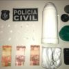 Segundo informações da Polícia Civil, a prisão do acusado se deu por volta de 13h desta quinta-feira (29) na avenida Tenente Almeida, bairro Riso do Prado, após uma série de denúncia eita por populares. Na residência do acusado identificado como Marcos Alberto Leonel Sales, vulgo “Marcos Aleijado”, os policiais encontraram 16 invólucros de Cocaína já prontos pra venda, além de sacos plásticos para a droga ser embalada e a quantia de R$ 40,00 em espécie e 01 aparelho celular.