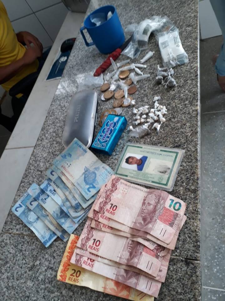 Francisco Weslys que já responde por furto, recebeu voz de prisão e foi autuado em flagrante na Delegacia de Aracoiaba pelo crime de tráfico de drogas.