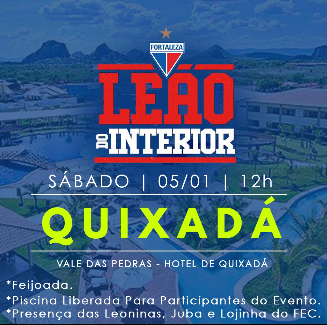 Neste sábado (05) o Leão do Pici realiza em Quixadá mais uma edição do “Leão do Interior”, evento que tem como objetivo a renovação e adesão de novos sócios torcedores. O evento será realizado no Hotel Vale das Pedras a partir das 12h.