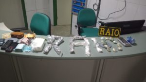De acordo com informações da Polícia Militar, por volta das 21 horas desta quinta-feira (03) uma composição do Raio 03, em patrulhamento as margens da BR 020, próximo a rua Adalberto, bairro Henrique Jorge, avistou quatro indivíduos em atitude suspeita em frente uma casa. Os homens foram abordados pelos policiais, contudo, nada foi encontrado, porém com a permissão do proprietário da casa, senhor Francisco Evaldo da Silva, 51 anos, conhecido como “Piriguete”, foi feita uma busca no local onde foi encontrado uma barra de 300g de cocaína, 85 papelotes de cocaína, 100 trouxinhas de maconha e 15 papelotes de crack e a quantia de 5 reais.