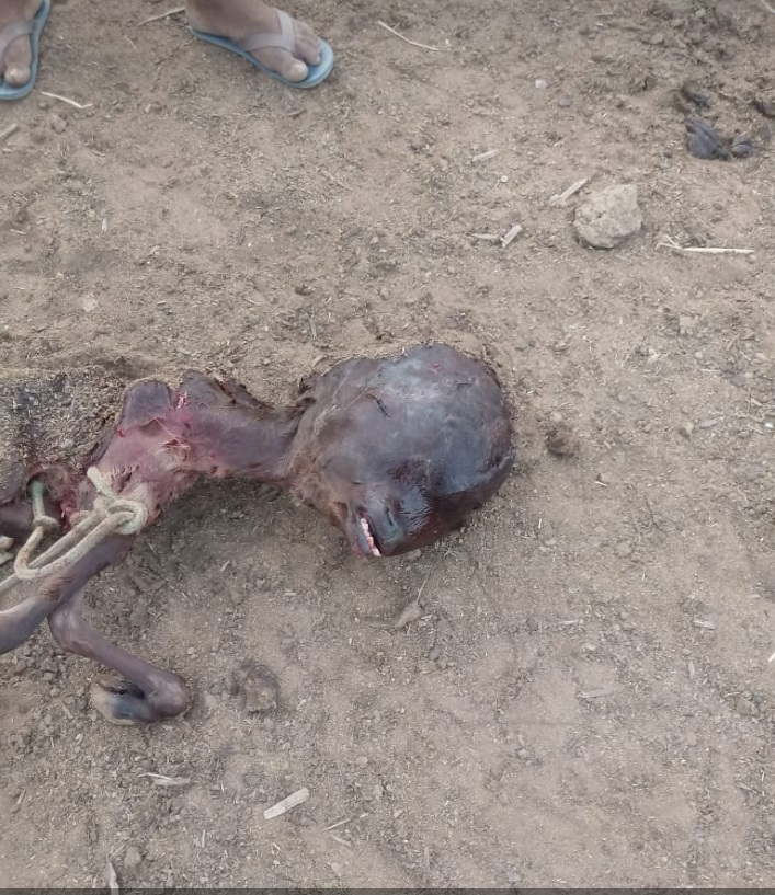 Para surpresa de muitos, o pequeno bezerro tinha aparência humana e já nasceu morto. A mãe do pequeno bezerro, sobreviveu e se recupera bem do procedimento cirúrgico a qual foi submetida.