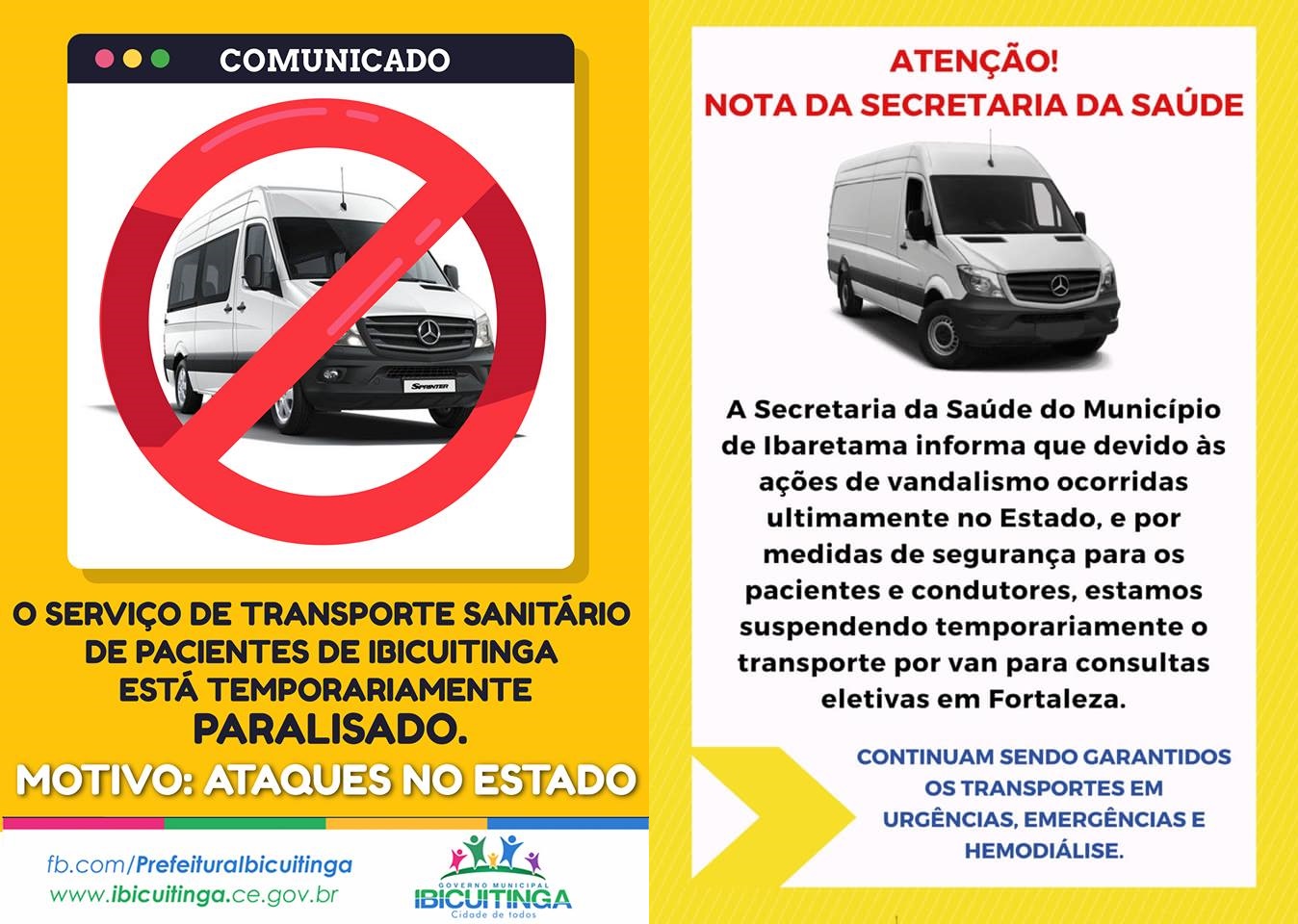 Já nesta terça-feira (08) foi a vez da prefeitura de Ibaretama suspender o transporte de pacientes para consultas eletivas na capital cearense. Em nota, a gestão municipal também alegou a falta de segurança e a onda de ataques criminosos para suspender o serviço. No entanto, os transportes de urgência, emergência e para hemodiálise continuam garantidos.