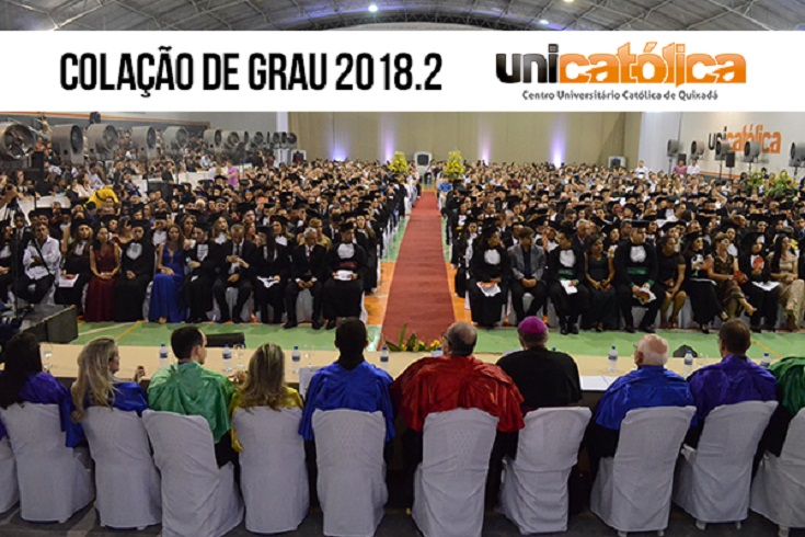 No dia seguinte, 04 de janeiro, a UNICATÓLICA celebrou a 24ª Solenidade de Colação de Grau dos formandos do período 2018.2, no Ginásio Poliesportivo da Instituição. Realizado em dois momentos, a Solenidade de Colação de Grau dos formandos dos cursos de Administração, Arquitetura e Urbanismo, Biomedicina, Ciências Contábeis, Direito e Educação Física (Bacharelado e Licenciatura) ocorreu no período da tarde, enquanto a Solenidade de Colação de Grau dos formandos dos cursos de Enfermagem, Farmácia, Filosofia, Fisioterapia, Odontologia, Psicologia, Sistemas de Informação e Teologia ocorreu durante a noite. Assim, foi encerrado mais um ciclo na vida acadêmica desses estudantes que, em festa, comemoraram a vitória, junto aos colegas e familiares.