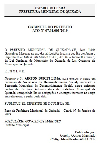 No último dia 31, o Monólitos Post, em primeira mão, veiculou matéria informando que o prefeito Ilário Marques (PT) iria nomear aliados políticos em substituição a secretária de Desenvolvimento Social, Rosa Buriti, e de Denis Dutra que estava a frente da Secretaria de Planejamento e Finanças que irão reassumir as vagas de vereadores. As nomeações para os cargos que ficaram vagos se concretizaram na segunda-feira (7). O irmão de Rosa, Airton Buriti, é o novo secretário de Desenvolvimento Social (SDS) e a secretária de Educação, Josenia França, responderá interinamente pela Secretaria de Planejamento e Finanças.