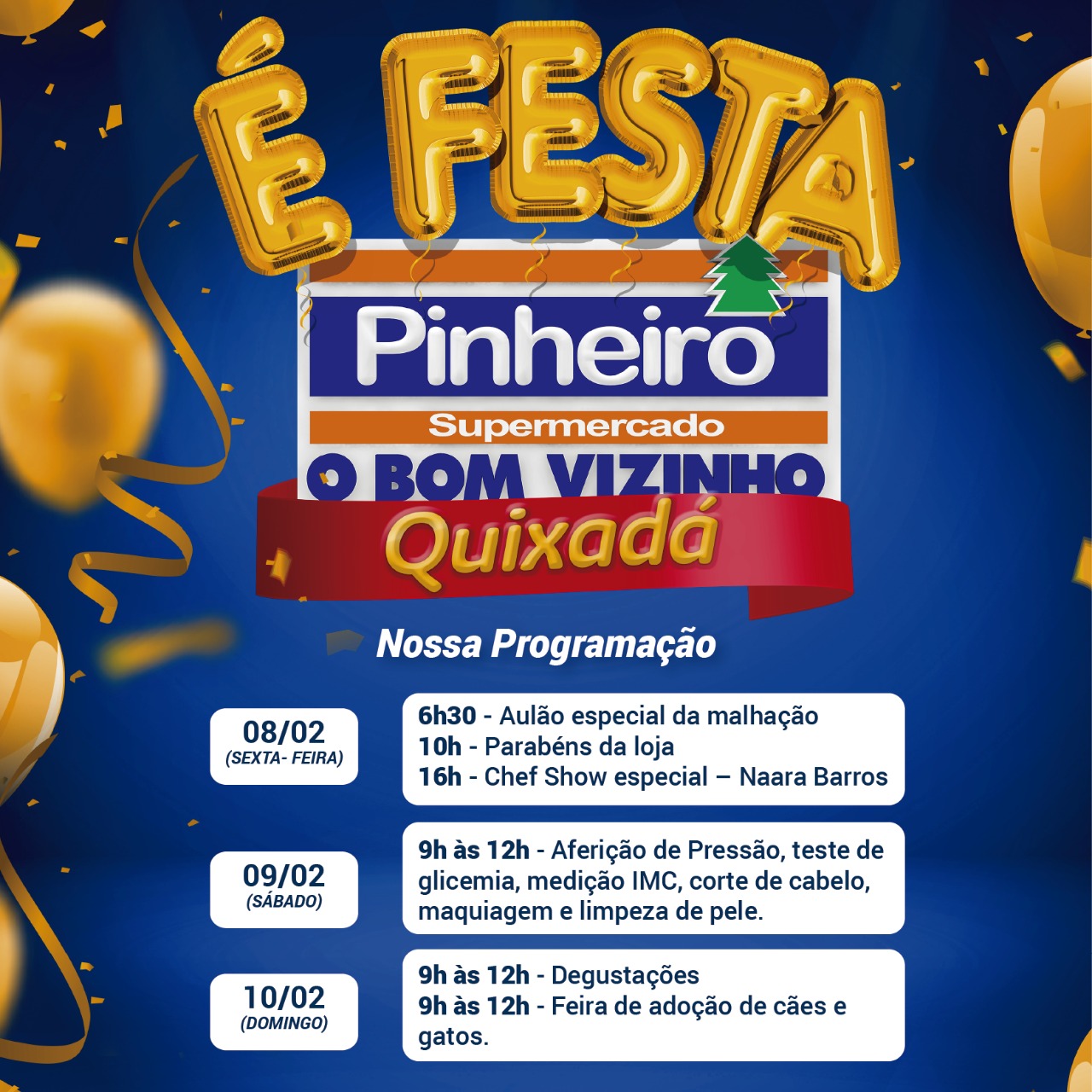 O Pinheiro Supermercado comemora aniversário da loja do município de Quixadá. Para celebrar, uma programação diferenciada foi pensada para os clientes.