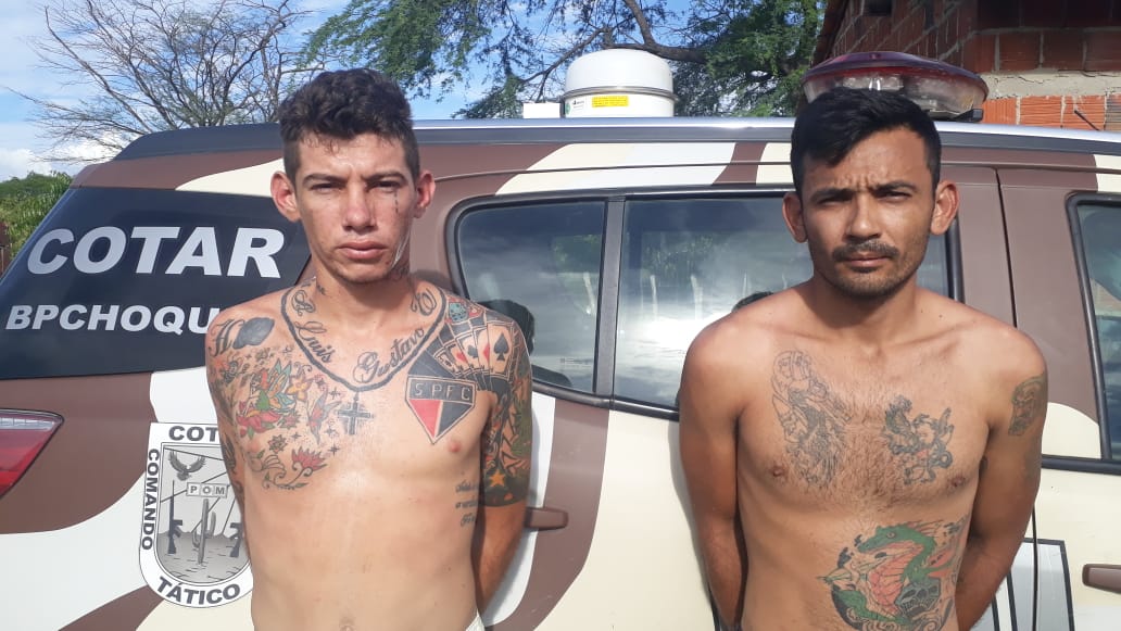 Os acusados foram presos no distrito de Várzea da Onça e identificados como Igor Viana Siqueira e Paulo Henrique Martins, ambos são fugitivos da cadeia pública de Sobral. Com eles foi encontrado 01 revólver cal.38, 01 faca e 09 celulares.