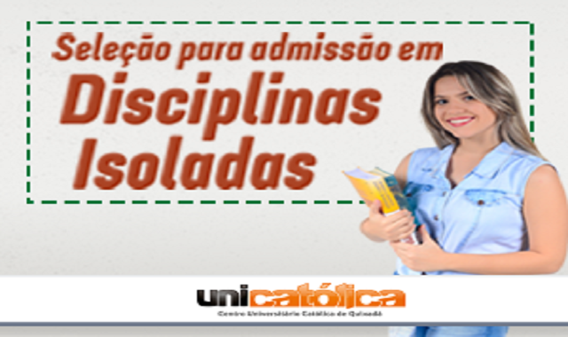 A UNICATÓLICA – Centro Universitário Católica de Quixadá, através da Pró-Reitoria de Graduação e Extensão, torna público o Edital que regula a seleção de alunos especiais em disciplinas isoladas para o semestre 2019.1.
