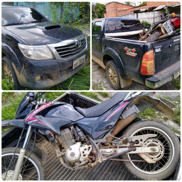 Após abordarem Elane com uma motocicleta com sinais identificadores adulterados, os policiais foram até a casa de “Barba Loira” e o encontraram no imóvel. Francisco Vieira do Nascimento, 52 anos, com antecedentes por receptação, roubo e furto de veículo, foi preso em flagrante. Em diligência no imóvel de Elane, os policiais apreenderam um Toyota Hilux que também apresentavam sinais identificadores adulterados. Após consulta dos dados originais do veículos, os agentes identificaram as placas verdadeiras: ORW-3558. O veículo estava com restrição de roubo. Em depoimento, a dupla confessou que iria vender a caminhonete e a motocicleta apreendidas na ação policial.