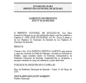 O prefeito de Quixadá, Ilário Marques (PT), nomeou, no inicio deste mês, dois dos secretários afastados, em agosto de 2018, pela operação “Fiel da Balança”, uma ação do Ministério Público que investiga um esquema de corrupção dentro do Executivo quixadaense, comando, de acordo com órgão, pelo próprio alcaide.