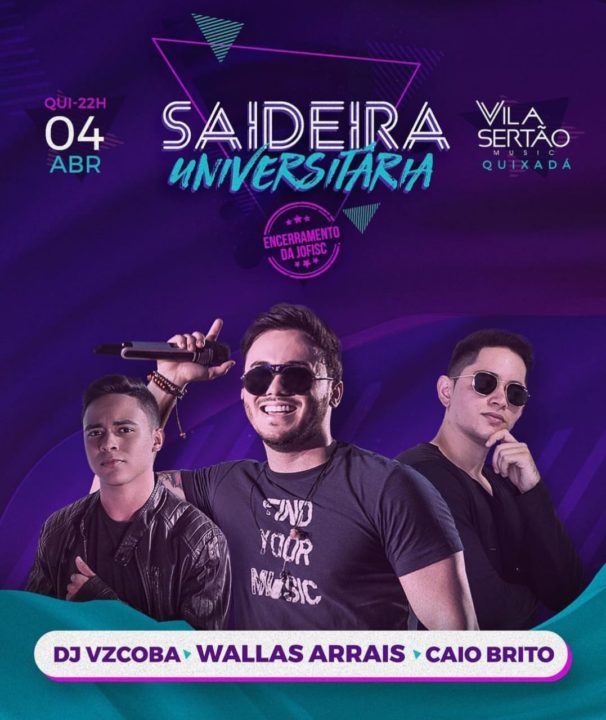 Wallas Arrais é natural de Iguatu, no interior do Ceará e vem se destacando no cenário do forró não somente no Ceará, mas em vários estados do Nordeste. Já o jovem quixadaense Caio Brito vem a cada dia conquistando seu espaço e alçando voos mais altos em busca de seus sonhos na música. O também prata da casa DJ Vzcoba tocará o melhor da música eletrônica e do funk.