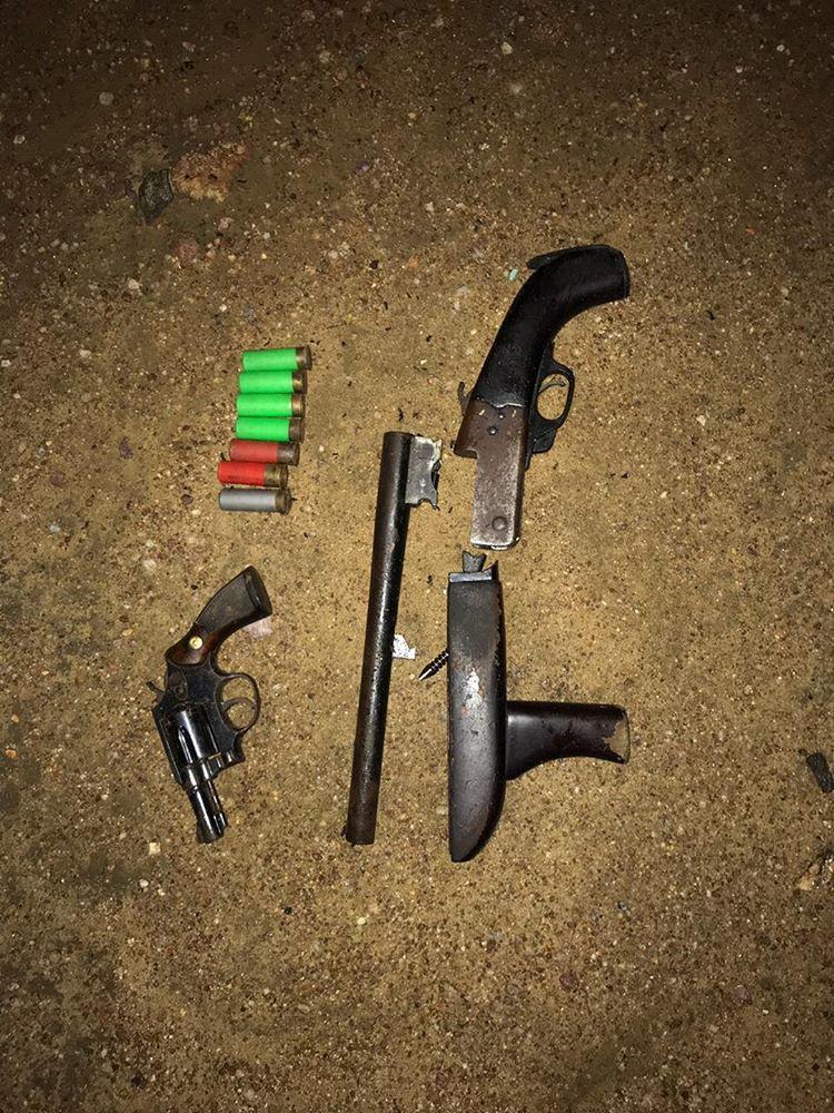 As armas utilizadas no crime foram apreendidas por volta de 21h de ontem em um matagal na localidade de Canafístola. Uma espingarda cal.12 e um revólver cal.38 além de 07 munições de cal.12 foram encontradas escondidas em um matagal.