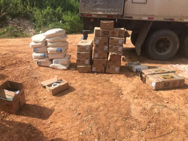 Com base nisso, foi feita a apreensão de 2.600 kg de Anfo (explosivo produzido pela mistura de hidrocarbonetos líquidos, com nitrato de amônio), 650 kg de emulsão encartuchada; sete espoletins; 15 conectores exel; 1.500 m de cordel detonante NP-5. Cerca de 200 kg de dinamite foram destruídos no local, devido à impossibilidade de remoção do local, pois o material já estava pronto para uso. O restante dos produtos foi transportado para Fortaleza, sob a responsabilidade do Exército Brasileiro.