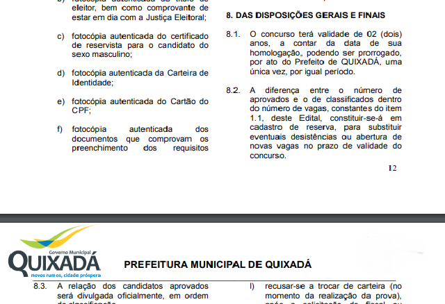 Veja abaixo o edital da seleção da Prefeitura de Quixadá.