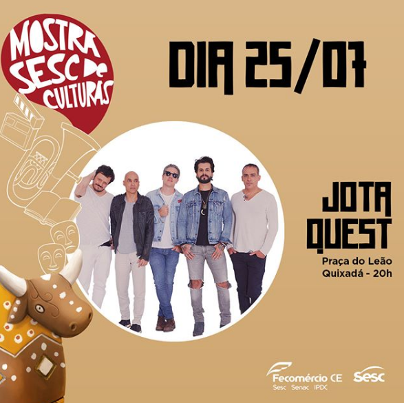 A abertura oficial da Mostra Sesc de Culturas do Sertão Central, acontecerá dia 25 de julho com um show inédito da banda Jota Quest a partir das 20h na Praça José de Barros, em Quixadá. Maiores informações do evento serão divulgados em breve pelo Sesc e Sistema Fecomércio.