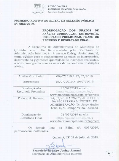 Na última sexta-feira (5), a Prefeitura Municipal de Quixadá finalizou as inscrições para as seleções públicas simplificadas abertas pelos editais de nº 002, 003 e 004/2019, que tem por objetivo a contratação de professores e preenchimento de vagas no âmbito das diversas Unidades Administrativas e também na área da Saúde, mas mesmo antes de finalizada esta etapa do processo, o Ministério Público do Estado do Ceará (MPCE) recomendou a anulação, que não foi acatada pelo prefeito Ilário Marques (PT).