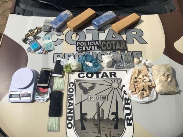 Uma operação realizada pela Polícia Civil e pela Polícia Militar, no último sábado (13), em Guaraciaba do Norte, resultou na prisão de dez homens, apreensão de aproximadamente cinco kg de drogas (maconha, cocaína e crack), seis aparelhos celular e cinco balanças de precisão. As prisões foram efetivadas por meio cumprimento de mandado de prisão e mandado de busca e apreensão.
