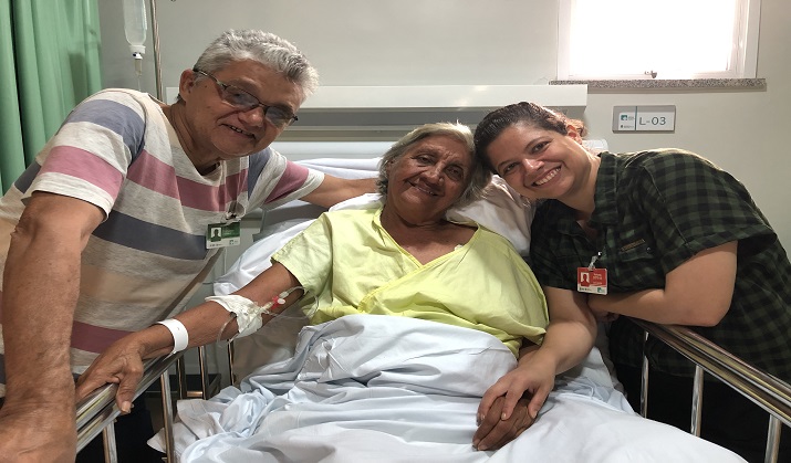 Uma das pacientes beneficiadas com essa assistência foi a aposentada Maria Aurora Gonzaga Marreiro, 73 anos, residente no município de Canindé, que foi internada no hospital após sofrer um AVC isquêmico. “Fiquei encantada com tudo que vi aqui. Eu fui muito bem recebida, desde o momento que eu cheguei até a hora de receber alta. É um atendimento especial, passando pela equipe de assistência até os profissionais da limpeza. Pra ser sincera, sinto um misto de saudade e alegria. Me senti tão bem tratada que não queria ir embora”, afirmou Maria, emocionada e grata pelo atendimento, e também feliz por voltar para casa.