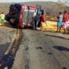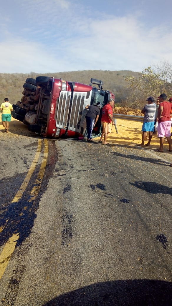 Uma carreta carregada de milho vindo do estado do Piauí tombou no início da manhã desta segunda-feira (02) na cidade de Banabuiú, no Sertão Central cearense.