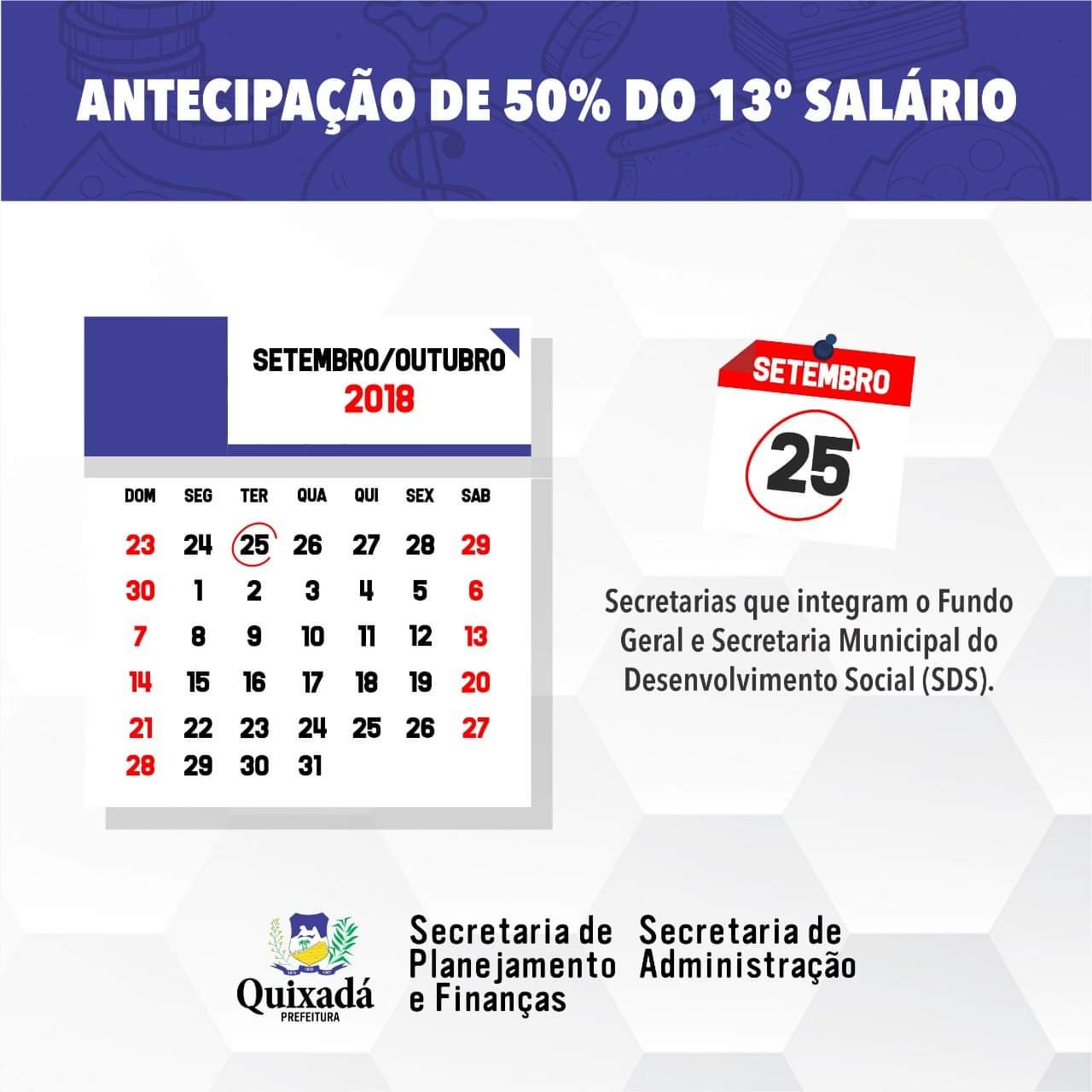 Os servidores ainda não têm previsão de quando receberão a primeira parcela do 13º salário e aguardam um posicionamento da Prefeitura Municipal de Quixadá, uma vez que, oficialmente, nada foi comunicado ainda.