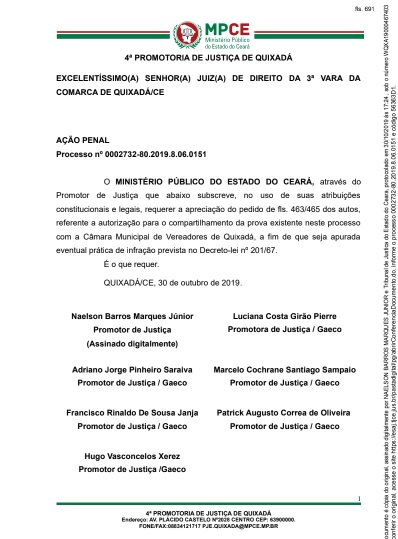 Os vereadores Cabo Marlim, Cesar Augusto, Evaristo Oliveira, Carlos Eduardo (Dudu), Luiz do Hospital, Marcelo Ventura, Professor Damasceno e Louro da Juatama assinaram o documento. Anteriormente, no dia 15 de agosto, eles também solicitaram que, por meio do requerimento de n° 298, após a apreciação dos demais parlamentares, o presidente interino da casa colocasse em votação o pedido de destituição do petista do cargo de presidente da Mesa Diretora. O assunto foi votado, mas não foi aprovado porque o prefeito orientou que a sua base aliada ficasse do lado de Ivan Construções e esquecesse à população, manchando a imagem da Câmara perante os quixadaenses.