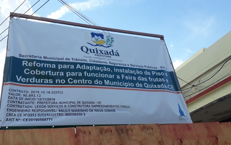 Após operação do MP, Prefeitura de Quixadá para reiniciar obra da feira de frutas que estava paralisada, estranhamente aumenta o valor